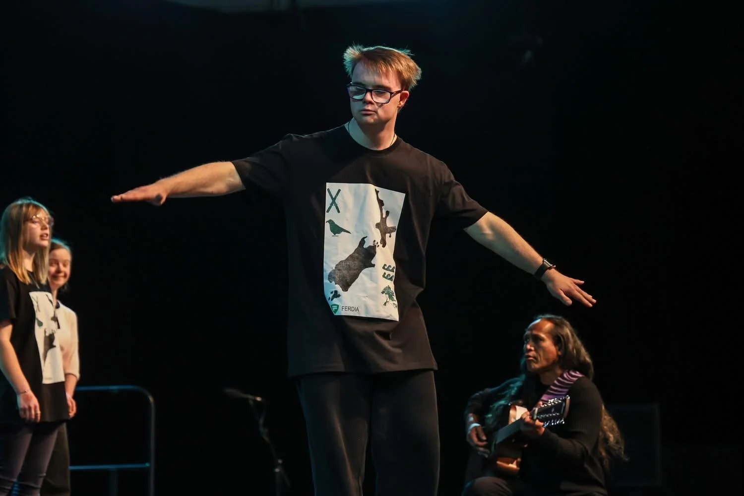 Their custom t-shirts were designed by Ferdia O’Connell, who also performed, and were created in the Creative Hub as part of his entry for Mīharo Murihiku’s t-shirt design competition.